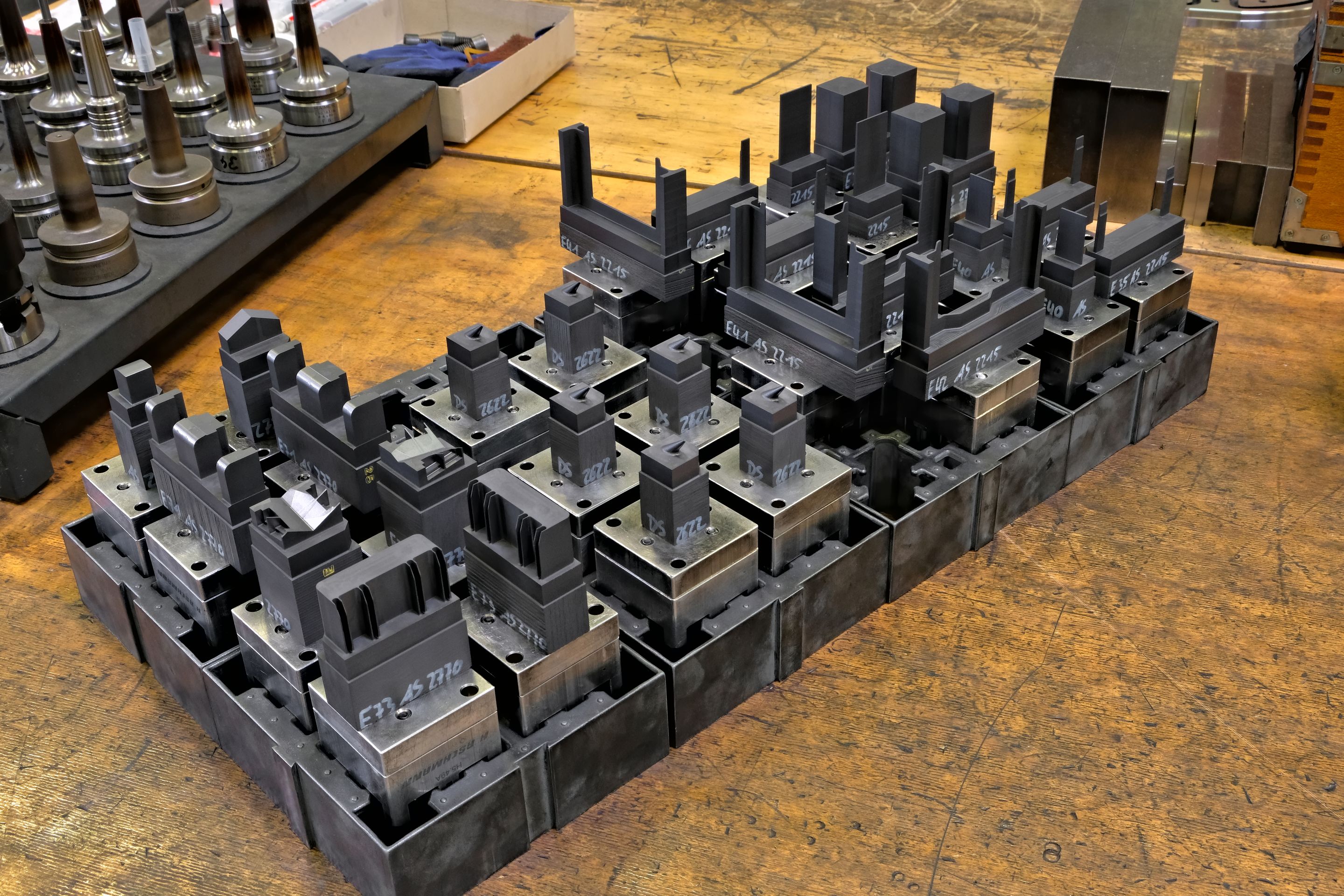 Ergänzen können wir unser Fertigungsspektrum im Bedarfsfall durch die Kooperation mit langjährigen Partnern auf den Gebieten neuer, innovativer Technologien wie 3D-Druck in Stahl und Kunststoff oder dem Vakuumlöten. Dadurch können wir auch ausgefallene Geometrien realisieren, wie sie beispielsweise für anspruchsvolle Werkzeugprojekte oder Roboter-Handlingsysteme benötigt werden.